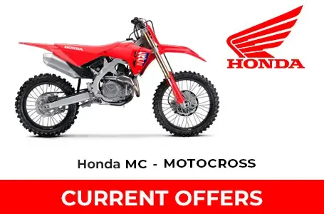 $750.00 in Honda Bonus Bucks rebate offer is valid with the purchase of new and unregistered 2025 and prior CRF450R models. Bonus Bucks rebate can be redeemed on date of purchase towards purchase of new and unregistered vehicle. Offer is not transferable. Check with participating Honda Dealers for complete details. Offer valid through March 31, 2026. Applicable taxes, shipping/handling fees may not be redeemed as part of this promotion. $1,500.00 in Honda Bonus Bucks rebate offer is valid with the purchase of new and unregistered 2025 and prior CRF450R models. Bonus Bucks rebate can be redeemed on date of purchase towards purchase of new and unregistered vehicle. Offer is not transferable. Check with participating Honda Dealers for complete details. Offer valid through March 31, 2026. Applicable taxes, shipping/handling fees may not be redeemed as part of this promotion. $500.00 in Honda Bonus Bucks rebate offer is valid with the purchase of new and unregistered 2025 and prior CRF250R models. Bonus Bucks rebate can be redeemed on date of purchase towards purchase of new and unregistered vehicle. Offer is not transferable. Check with participating Honda Dealers for complete details. Offer valid through March 31, 2026. Applicable taxes, shipping/handling fees may not be redeemed as part of this promotion. $500.00 in Honda Bonus Bucks rebate offer is valid with the purchase of new and unregistered 2025 and prior CRF250R models. Bonus Bucks rebate can be redeemed on date of purchase towards purchase of new and unregistered vehicle. Offer is not transferable. Check with participating Honda Dealers for complete details. Offer valid through March 31, 2026. Applicable taxes, shipping/handling fees may not be redeemed as part of this promotion.
